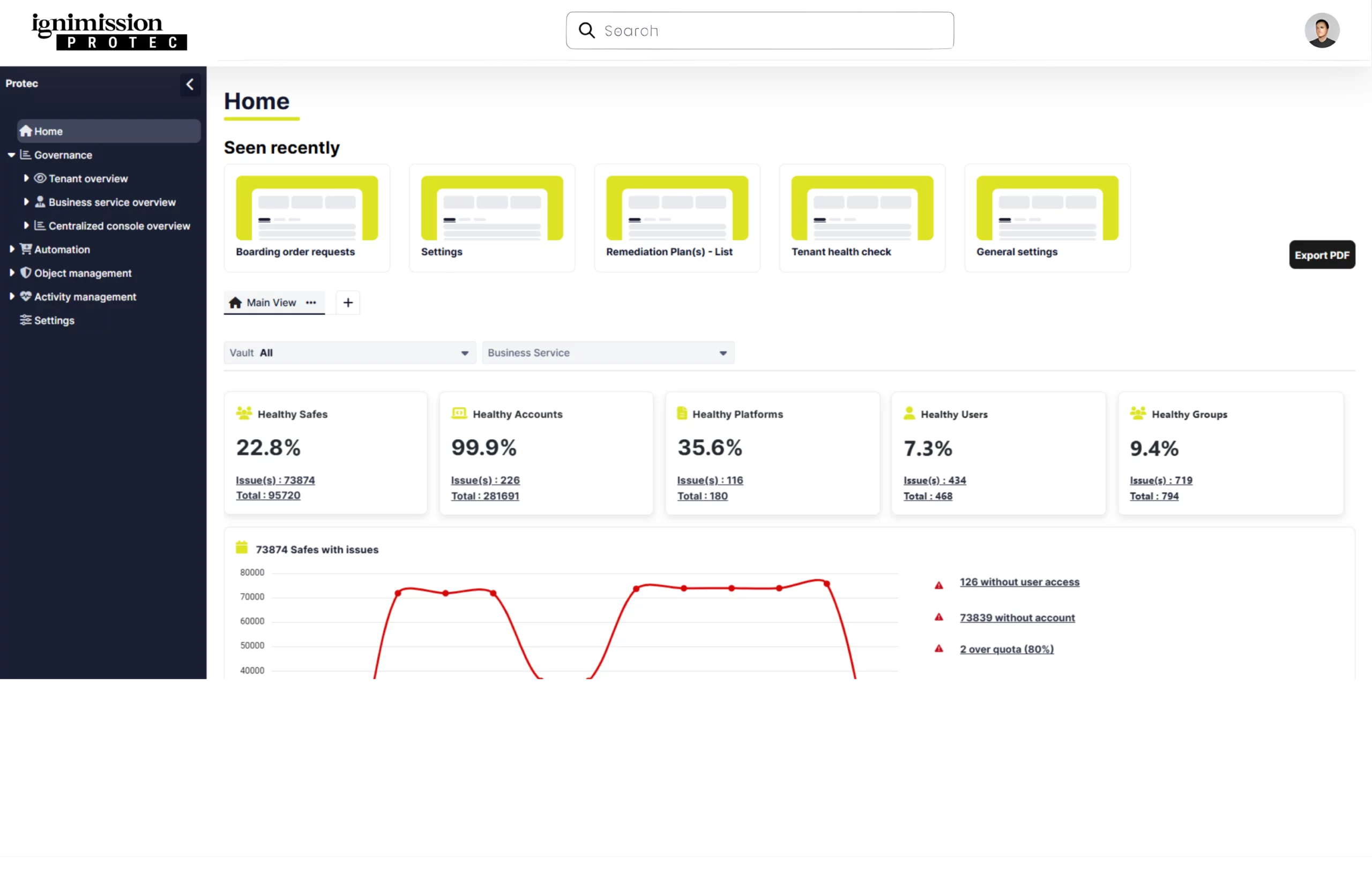 Ignimission Identity closes the loop. It connects and automates across your entire identity stack, giving CISOs the board-level posture view they need, PAM managers the operational efficiency they are missing, and compliance teams the continuous evidence they can no longer afford to build manually.