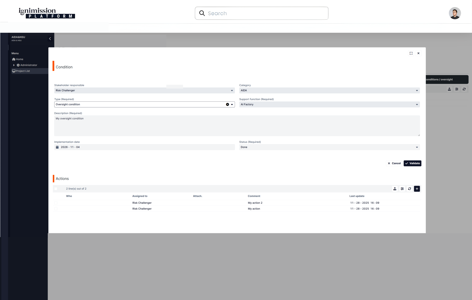 La plateforme GRC no-code Ignimission et ses accélérateurs dédiés permettent de cartographier, classer, évaluer, gouverner et surveiller vos cas d’usage IA, tout en s’intégrant à vos processus internes existants